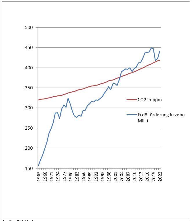 Quellen: Erdölförderung Daten aus: https://de.wikipedia.org/wiki/Erd%C3%B6l/Tabellen_und_Grafiken CO2-Messung: Daten aus: Umweltbundesamt/NOAA Global Monitoring Division and Scripps Institution of Oceanography /World Meteorological Organization